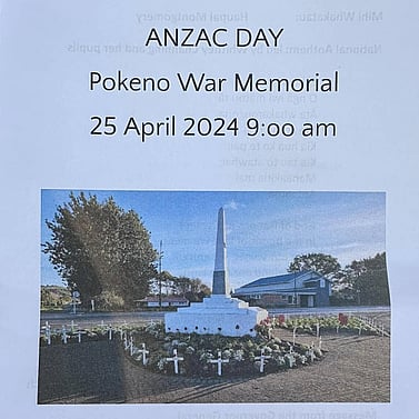Our Pokeno Community Anzac Day Service will be on Thursday 25 April 2024, at 9 am. Our Parade will meet at the railway line end of Market Rd and march up Market Rd to the Cenotaph, the change is due to the road works